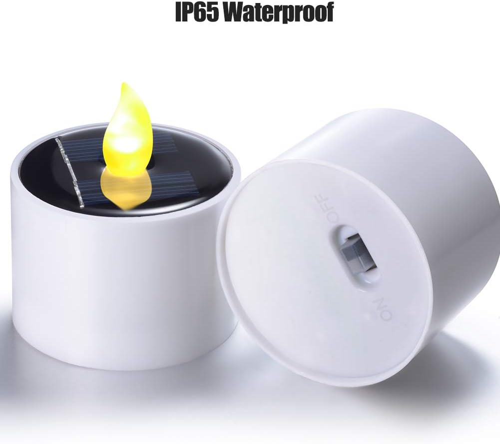 6pcs Solar Power Tea Lights Outdoor Candle Flameless Flicker IP65 Waterproof Rechargeable LED Candles with Dusk to Dawn Sensor for Lantern Garden Camping Party Home Decorations, 2.3″ x 2″