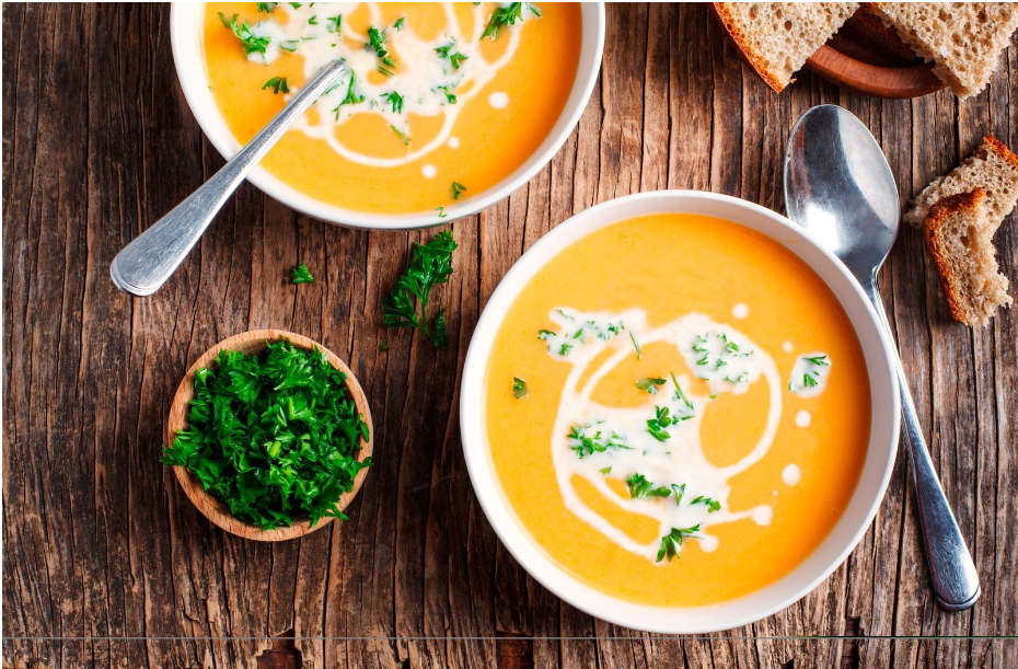 - Blend the vegetables and broth together into a puree, and season with salt, pepper, and cinnamon.