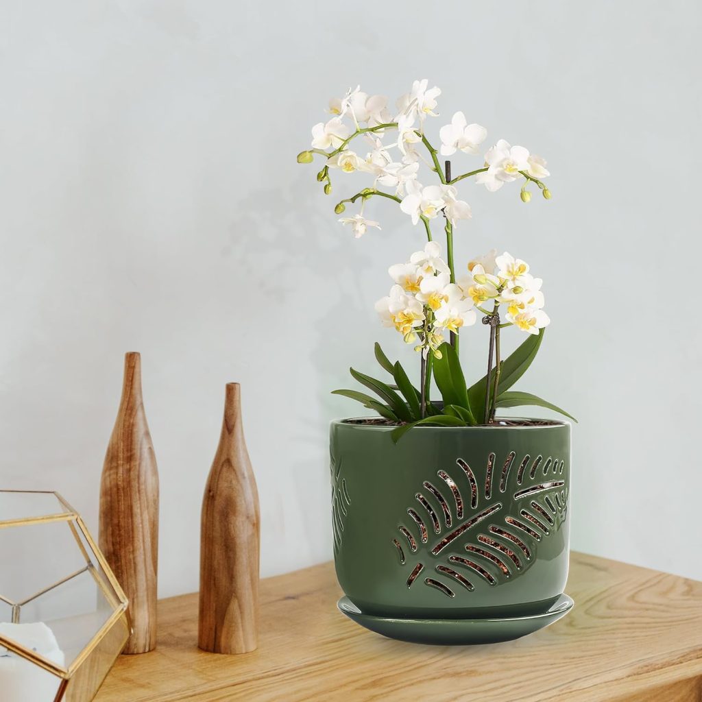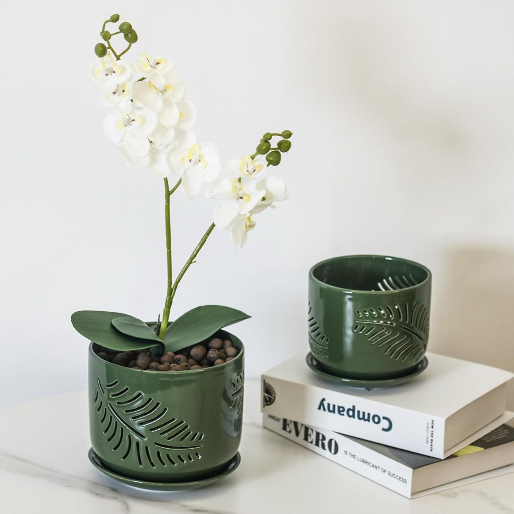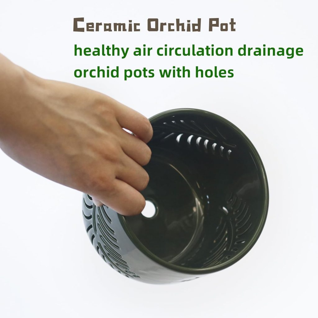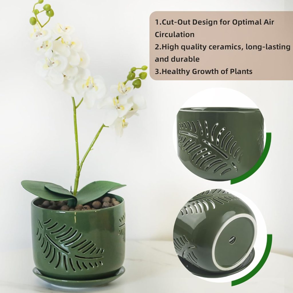 Get yours today!Ceramic Orchid Pots,5+6Inch Orchid Pot with Drainage Hole,Promote Healthy Air Circulation,Indoor/Outdoor Orchid Pots Gardening Home Desktop Office Windowsill Decoration(White/Green)