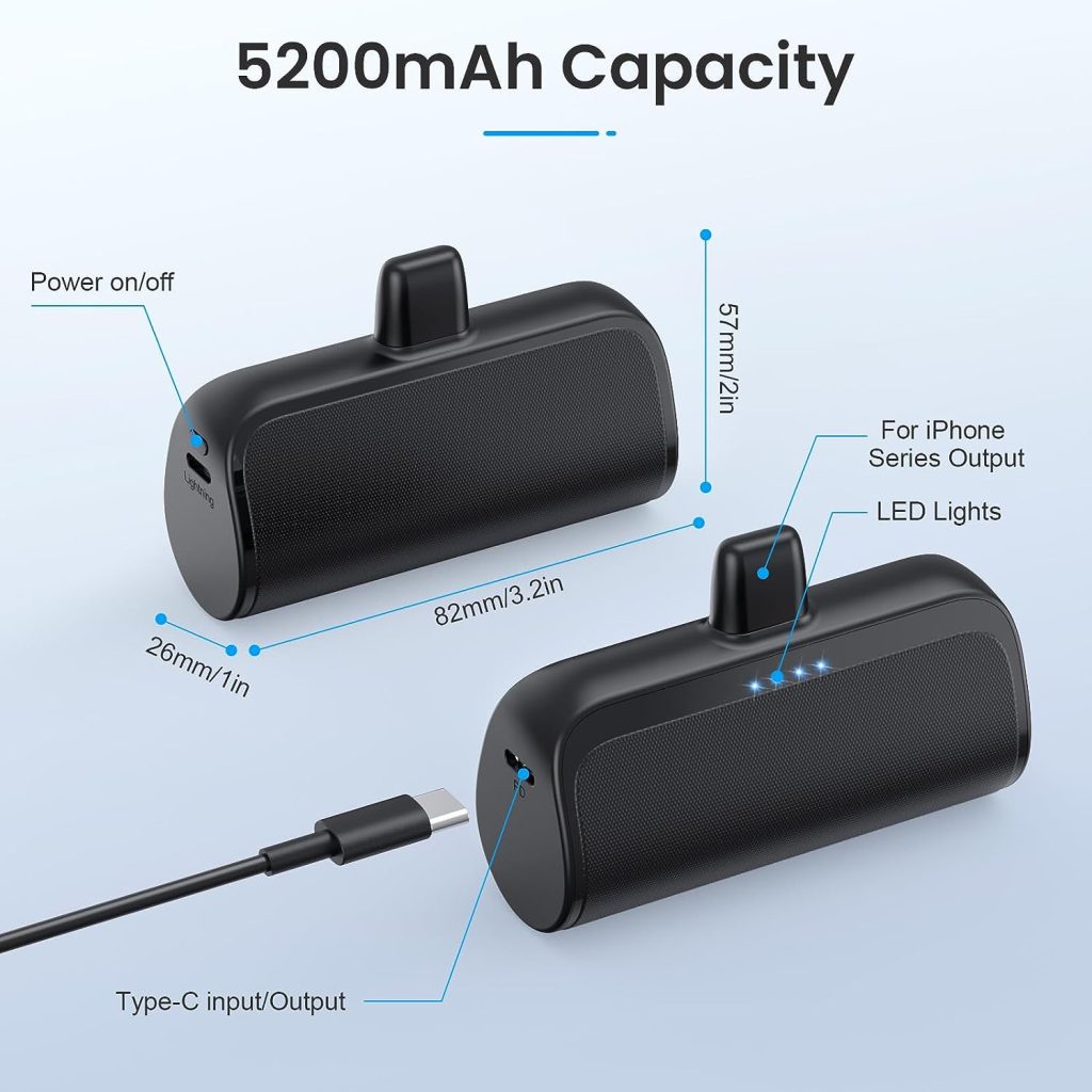 Get 49% off!Mini Portable Charger Power Bank for iPhone,5200mAh Portable Phone Charger, Ultra-Compact PD Fast Charging Battery Pack Compatible with iPhone 14/14 Plus/Pro Max/13/12/12 Mini/11/XS/XR/X/8/7/6/6s