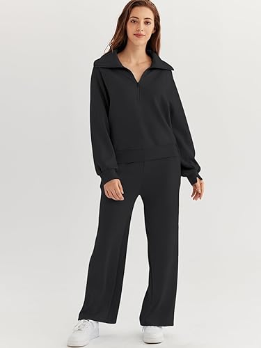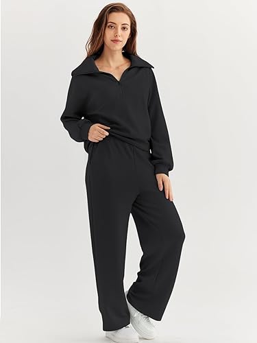 Women’s 2 Piece Sweatsuits Loungewear Sets offer the perfect blend of style, comfort, and versatility for your everyday wardrobe. With a quarter-zip pullover sweatshirt and wide-leg sweatpants, this loungewear set is designed to keep you cozy and fashionable in any situation. Let’s explore the key features and benefits of this chic and comfortable outfit.